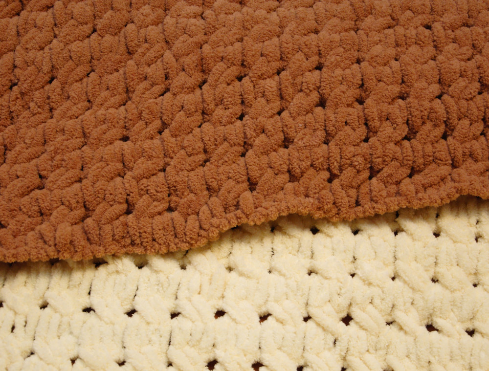 Hideg időre való, kellemesen puha és nagyon meleg takarót lehet készíteni a Puffy fonalból.